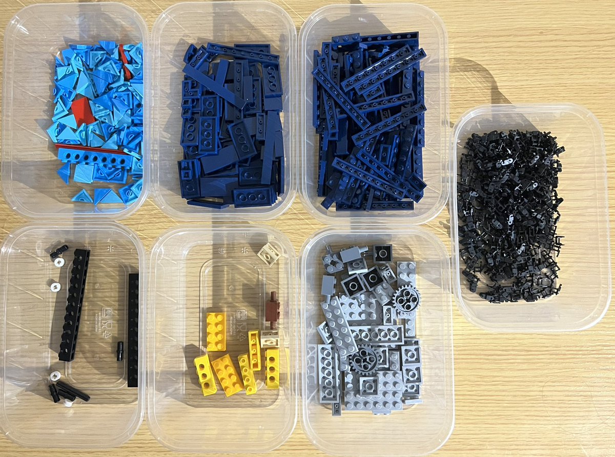 Bag 9 has this very dissatisfying mixed colour pot because there are two types of blue pieces that need their own pot.